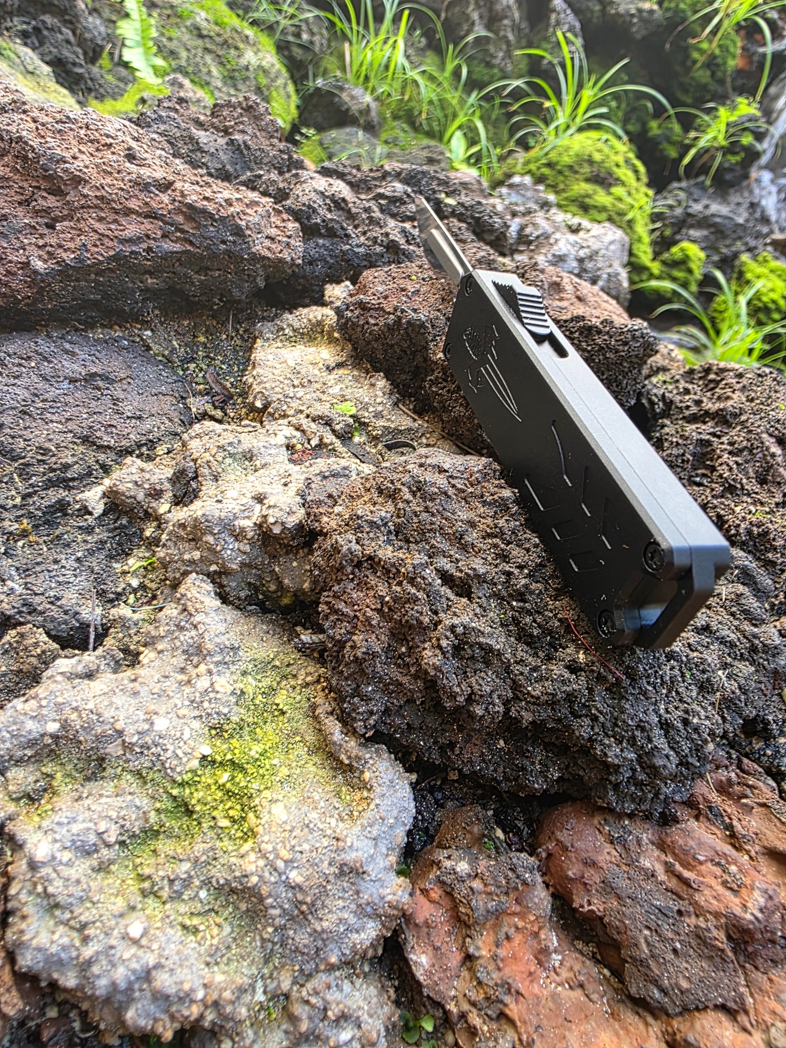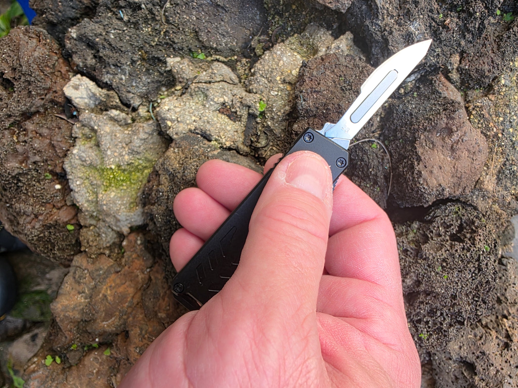 If your job involves cutting open boxes, this knife is for you. Sticky tape residue will seize the blade on most OTF knives but not this one. The blade is much thinner than the slot it retracts into, so no amount of tape residue will affect operation. Easy to swap out the blade when it becomes too dirty. This knife is also ideal for trappers/skinners who need super fine detailed cuts.